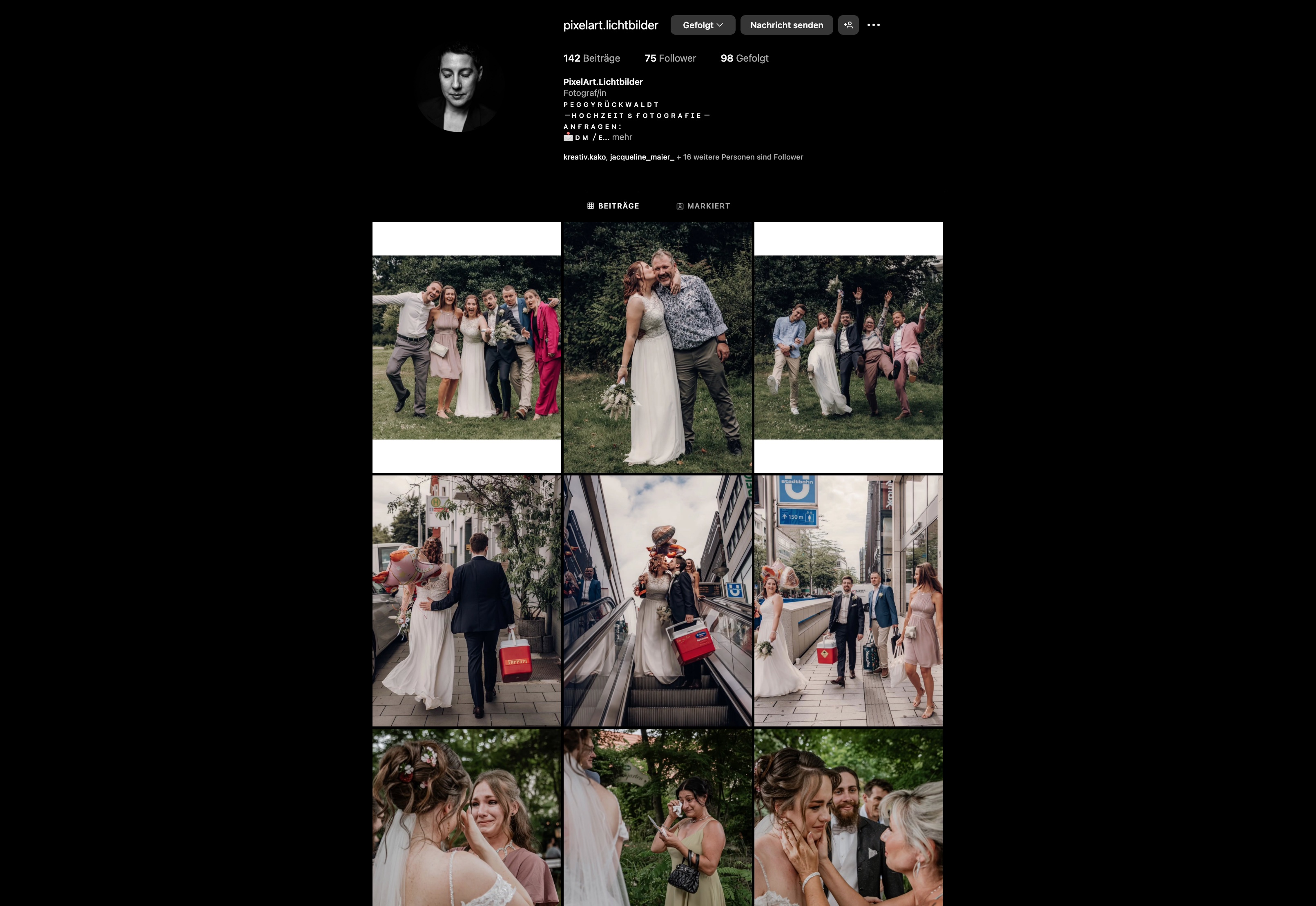 Auf meiner Instagram-Seite zeige ich euch eine Sammlung wunderschöner und emotionaler Hochzeitsfotos, die ich in den letzten zwei Jahren aufnehmen durfte. Lasst euch von den einzigartigen Momenten verzaubern, die ich mit meiner Kamera eingefangen habe. Innige Blicke, die Geschichten erzählen und die Magie des Hochzeitstages festhalten, strahlende Gesichter, die die Freude und Leichtigkeit des Tages zeigen, wunderschöne Dekorationen, Blumenarrangements und liebevolle Details, die den Tag so besonders machen. Stimmungsvolle Momente, die die Atmosphäre des Hochzeitstages einfangen und die Emotionen der Gäste widerspiegeln, sowie traumhafte Locations von romantischen Gärten bis hin zu prunkvollen Sälen – die schönsten Orte für den schönsten Tag im Leben.