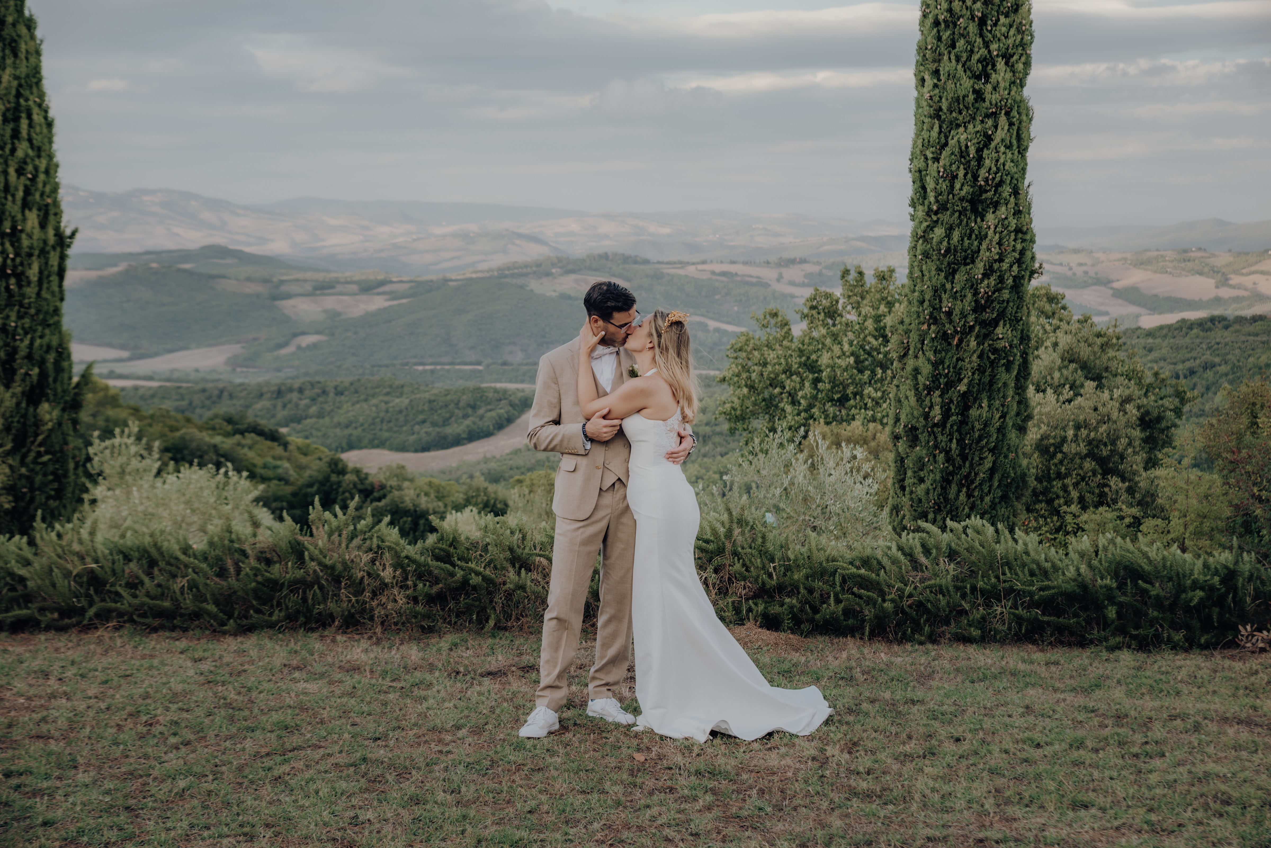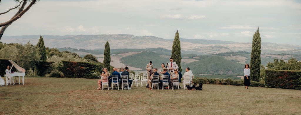 It’s Tuscany – Zypressen, Wein und weite Sicht. Und eine Hochzeit, die schöner, entspannter und intimer nicht sein konnte.